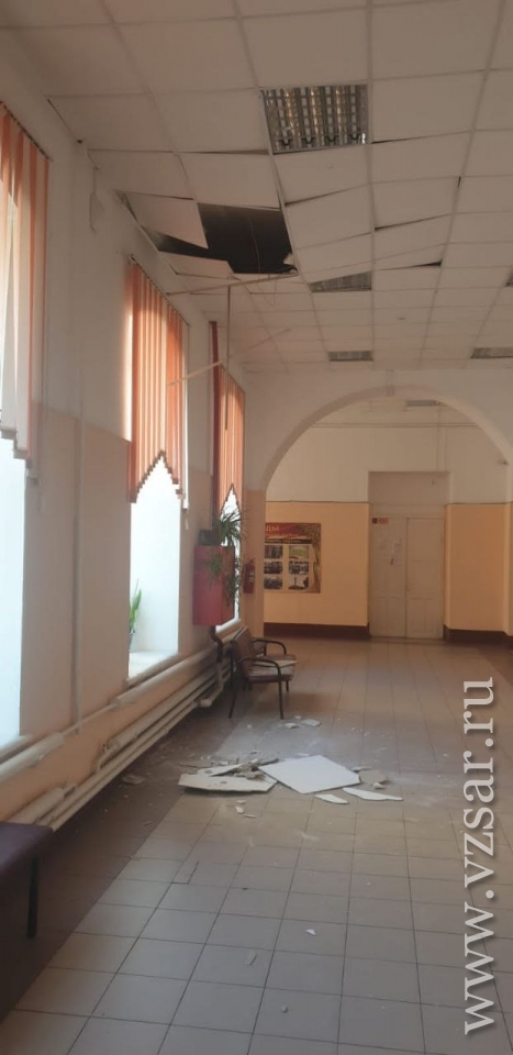 Напомним, вчера около 12.40 в коридоре образовательного учреждения, которое расположено на улице Пугачева, 123, частично обрушилась потолочная отделка.