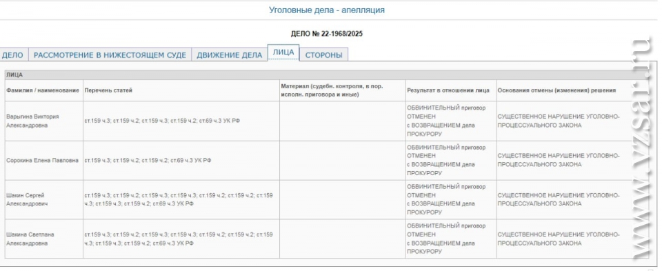 Прокуроры обжаловали возврат дела в областной суд, но в августе он подтвердил законность решения судьи Зюзюкиной.