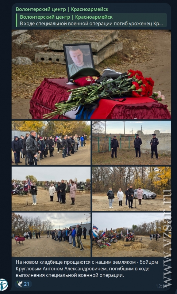 Муниципальный волонтерский центр Красноармейского района рассказал о состоявшемся прощании с Антоном Кругловым.