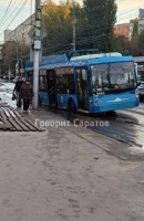 На этот раз в коммунальную яму попал троллейбус № 109, курсирующий между Саратовом и Энгельсом.