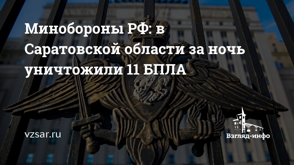 Минобороны РФ: в Саратовской области за ночь уничтожили 11 БПЛА