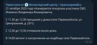 Волонтерский центр Красноармейского района сообщает, что завтра в селе Первомайском простятся с погибшим Владимиром Фоменко.