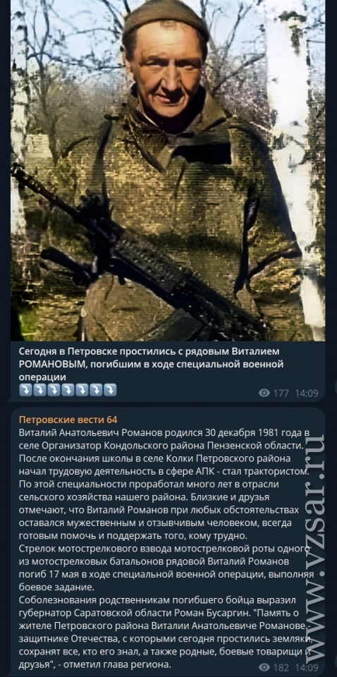 Издание "Петровские вести" рассказало о прошедшем прощании с погибшим рядовым Виталием Романовым.