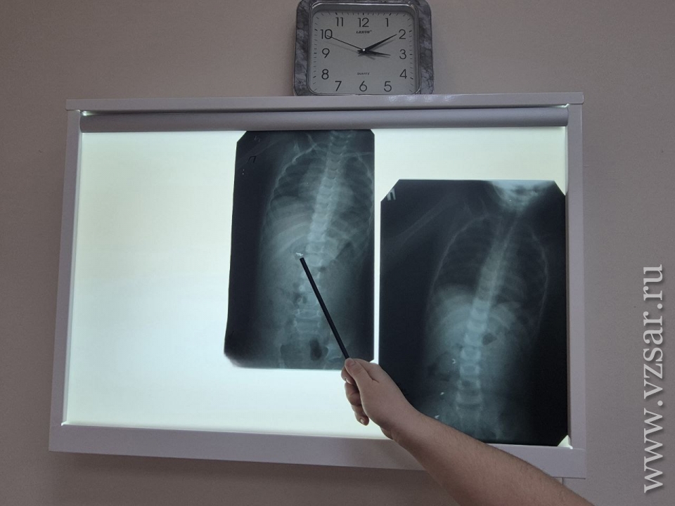 "Семья отправилась в Хвалынскую больницу, где ребенку был выполнен рентгеновский снимок, который показал наличие инородного тела в желудке. Юного пациента перенаправили в БГКБ. Контрольный снимок отчетливо показал, что, во-первых, инородное тело состоит из трех частей, а во-вторых, что они находятся уже не в желудке, а распределились по кишечнику", - рассказали врачи.