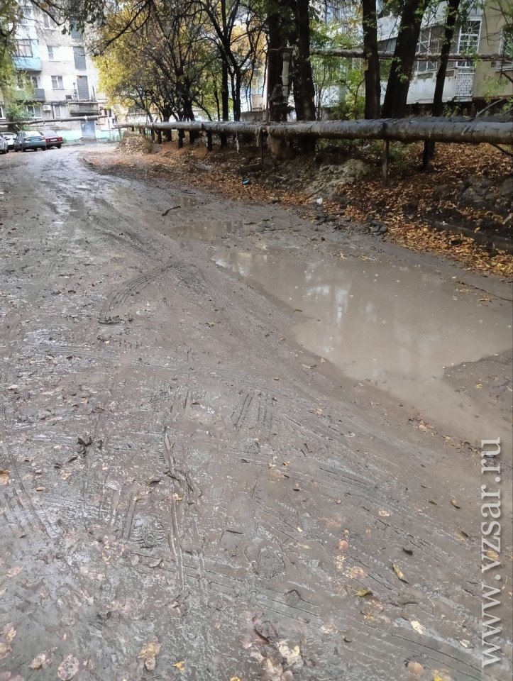 Жители Ленинского района Саратова возмущены последствиями незавершенного ремонта придомовой территории на улице Ламповая, 4А/1, которая прилегает к детсаду № 142.