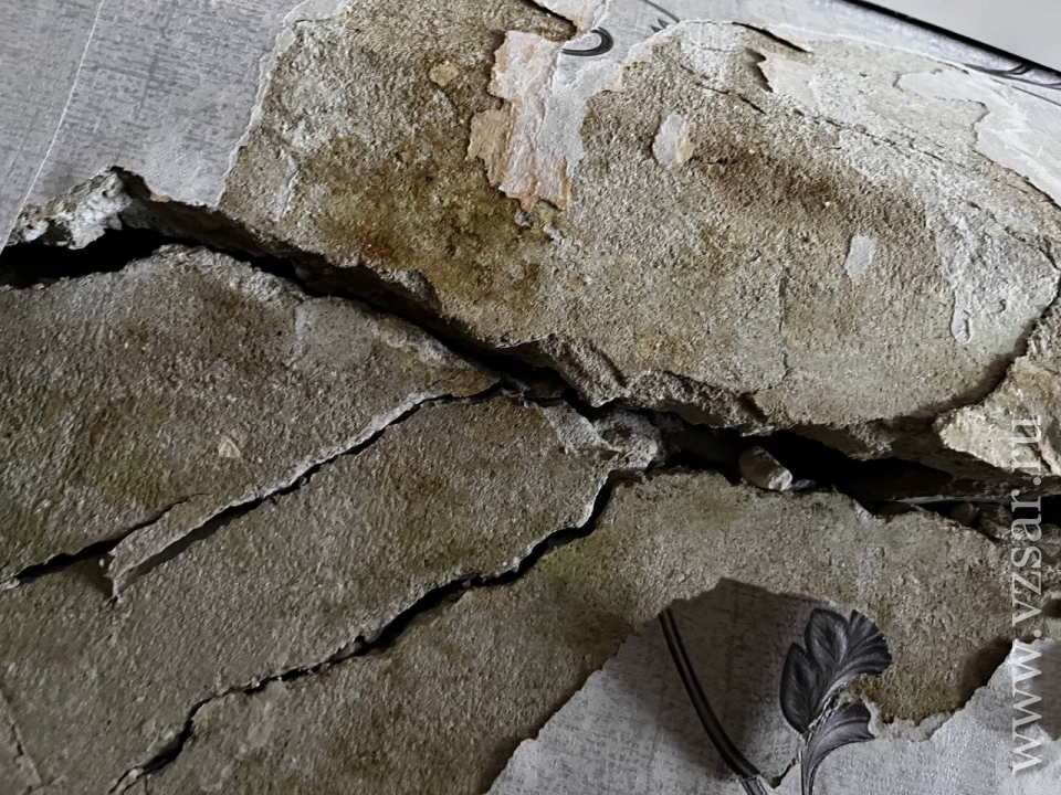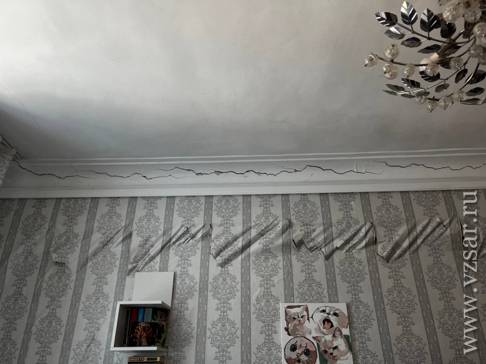 В субботу, когда шли работы по укреплению фундамента, рабочие весь день стучали, долбили. У нас начала осыпаться стена. Я весь день ходила и говорила рабочим, что у нас все сыплется. Но меня уверяли, что у них все под контролем. Прошло минут десять после того, как они ушли, мы с ребенком лежали на диване. Вначале начало осыпаться между стеной и обоями. Мы испугались и сели на диване. Потом я услышала хруст, треск – как будто дом разрушался пополам", – рассказала жительница Марина Кандрина.