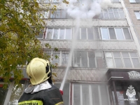 С верхних этажей задымленного подъезда были эвакуированы девять человек, еще 13 вывели в спасустройствах. Пострадавших нет.
