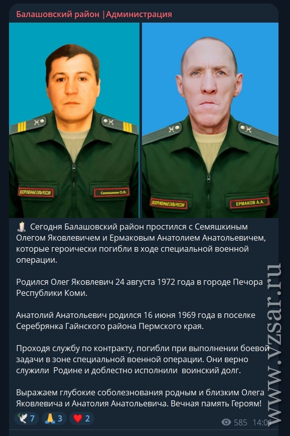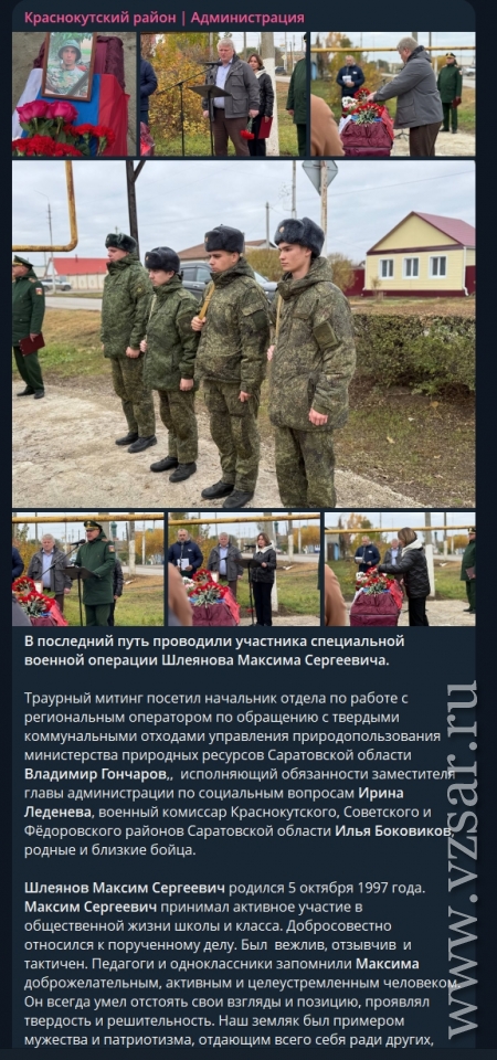 Администрация Балашовского района рассказала о прошедшем прощании с погибшими Олегом Семяшкиным и Анатолием Ермаковым.