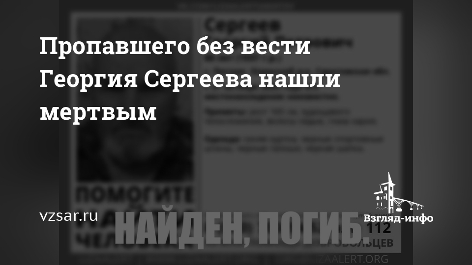 Пропавшего без вести Георгия Сергеева нашли мертвым