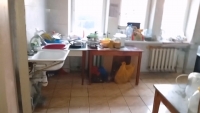 Антонина спускается, чтобы встретить меня. Подъездная дверь отпирается ключом. Мы идем по темным лестницам и коридорам. Электричества в половине здания нет. Поскольку стиральная машина стоит как раз на обесточенной половине, приходится питать ее от удлинителя. Газовая плита тоже в "темной" части общежития, на конфорках стоят два ведра с водой – чтобы блюсти гигиену и мыться, приходится греть воду так. Отопления нет совсем, поэтому в коридорах свежо, как на улице.