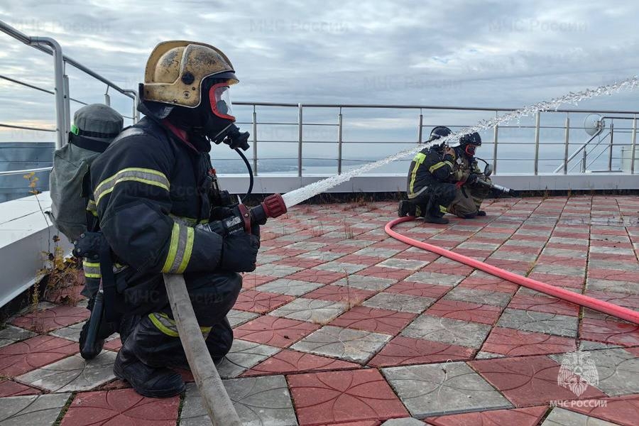Саратовские пожарные учились тушить крышу на 125-метровой высоте