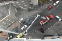 В частности, пожарные отработали несколько способов подачи воды – внутренний трубопровод, сухотруб и опытный переходник, запитываемый насосом высокого давления, автоколенчатый подъемник для подачи воды на фасад здания и рукава высокого давления.