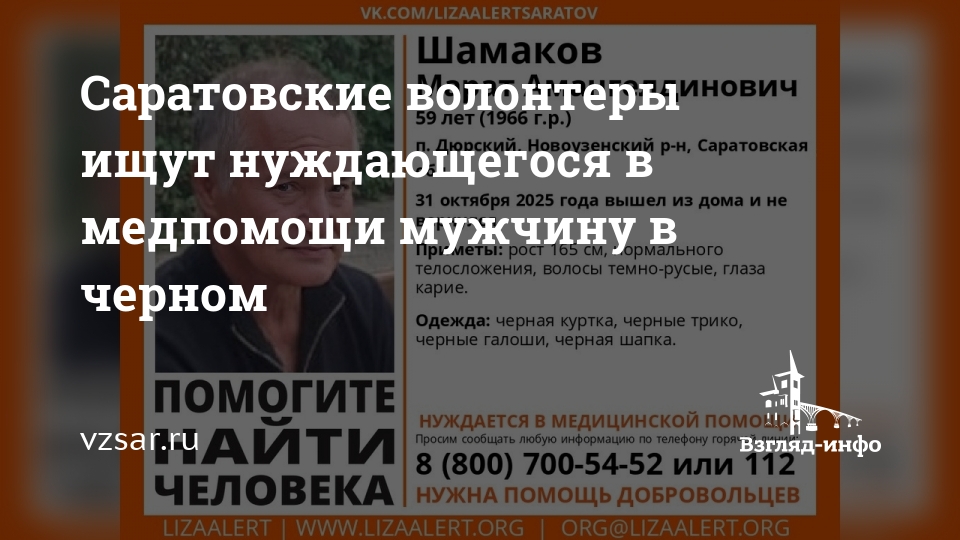 Саратовские волонтеры ищут нуждающегося в медпомощи мужчину в черном