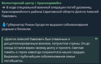 А волонтерский центр Красноармейского района рассказал о погибшем земляке Алексее Долгих. Губернатор и местные власти выразили соболезнования родным Алексея Павловича.