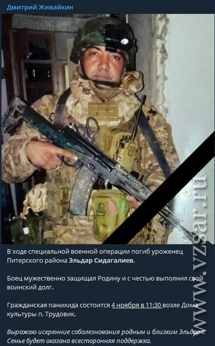 Завтра в поселке Трудовик проводят в последний путь уроженца Питерского района Эльдара Сидагалиева. Глава района Дмитрий Живайкин пообещал семье военнослужащего всестороннюю поддержку.