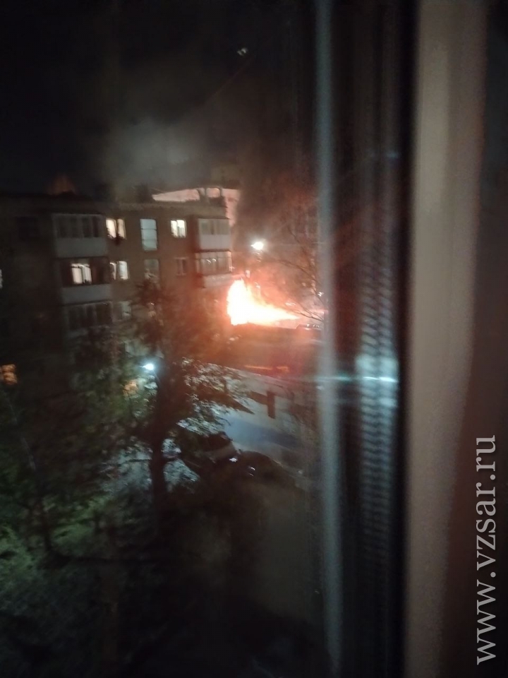 По словам очевидцев в группе "Говорит Саратов", техника воспламенилась, а потом раздался громкий хлопок от лопнувшей шины.