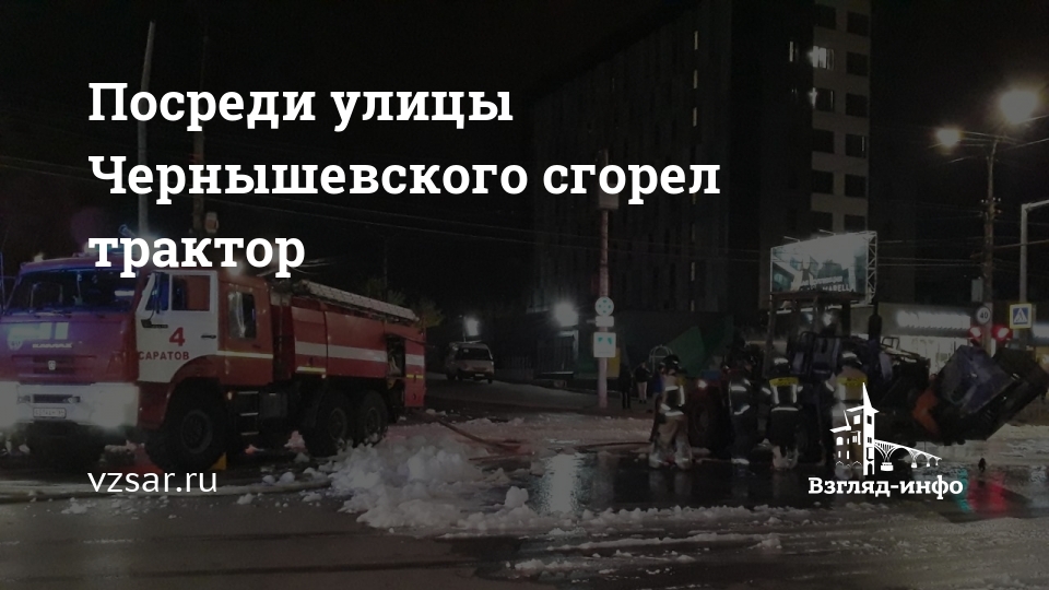 Сегодня около полуночи в Саратове на пересечении улиц Чернышевского и Дегтярная горел трактор.