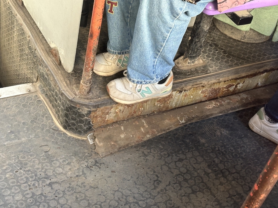 В подтверждение горожане прислали фотографии, сделанные в автобусах, на которых видна изношенность транспорта.