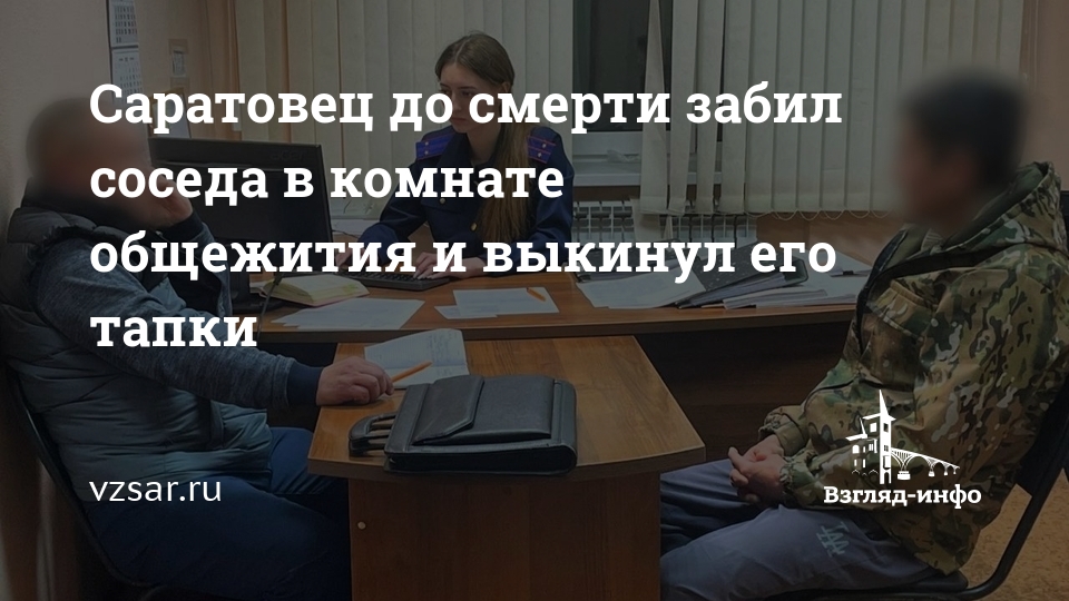 Как сообщает региональное СУ СКР, 30 октября 48-летний мужчина в комнате общежития на 5-й Линии поссорился со своим 63-летним соседом. В ходе конфликта он избил его, после чего вытащил из своей комнаты и выкинул его тапки. От полученных травм потерпевший скончался.