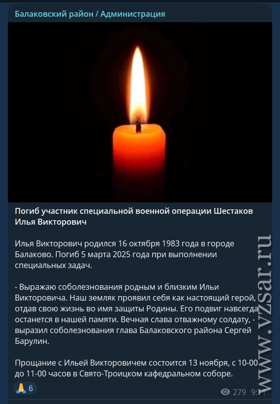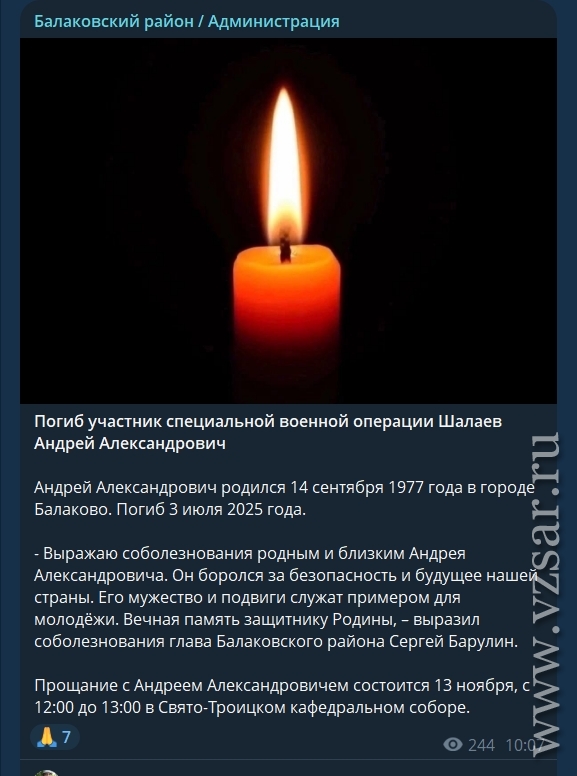 Администрация Балаковского района рассказала, что завтра состоится прощание с погибшими Андреем Шалаевым и Ильей Шестаковым.