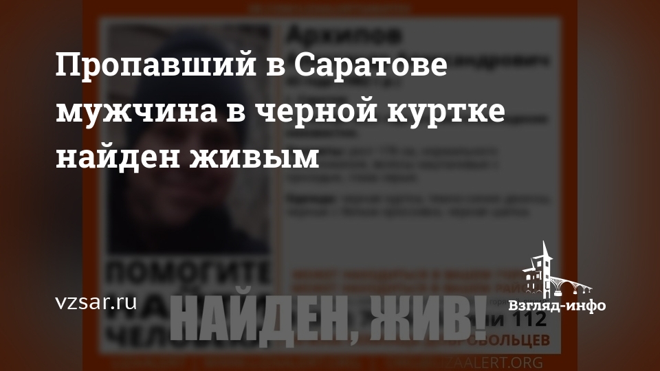 Пропавший в Саратове мужчина в черной куртке найден живым