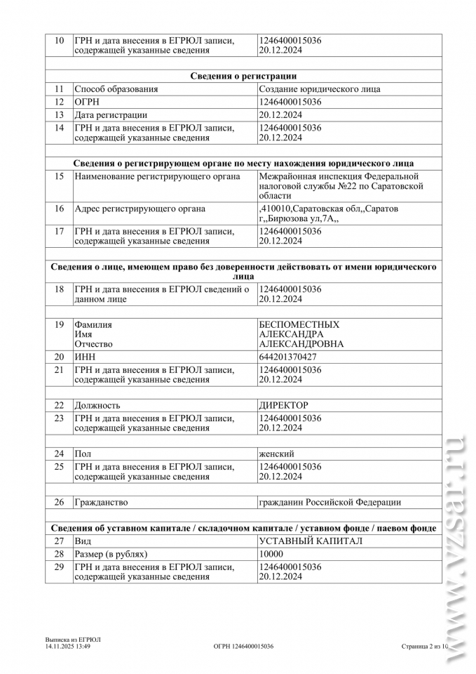Фирма с уставным капиталом в 10 тысяч рублей зарегистрирована меньше 11 месяцев назад - 20 декабря 2024 года.