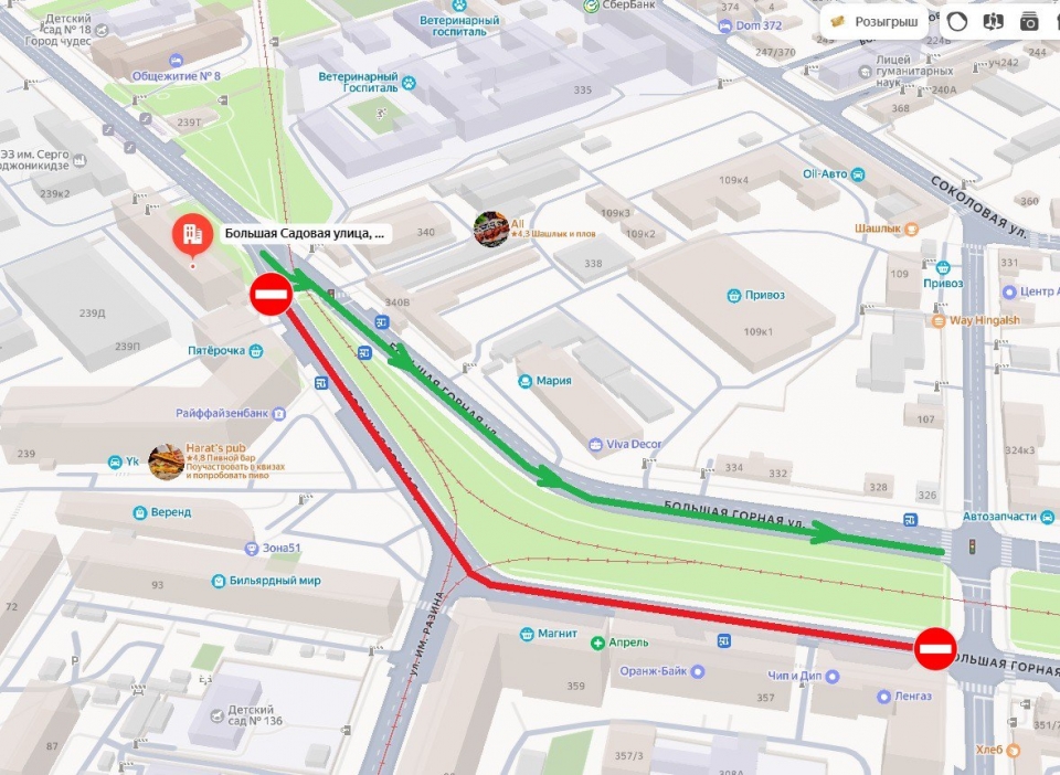 Завтра, 15 ноября, с 5.00 на теплосети на улице Большой Горной будут проводиться работы. Поэтому временно будет закрыт для движения автотранспорта участок от дома № 239 к.1 по ул. Большой Садовой до Университетской в направлении Сенного рынка.