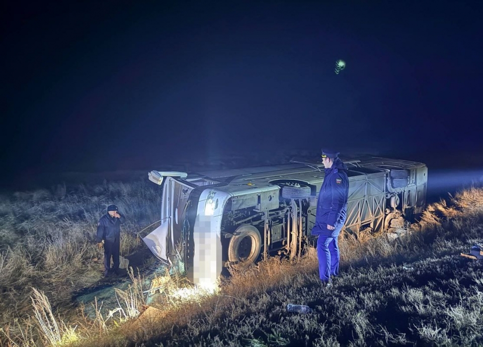 По предварительным данным, в 20.00 вблизи села Семено-Полтавка управлявшийся 56-летним мужчиной автобус Yutong съехал с дороги и опрокинулся.