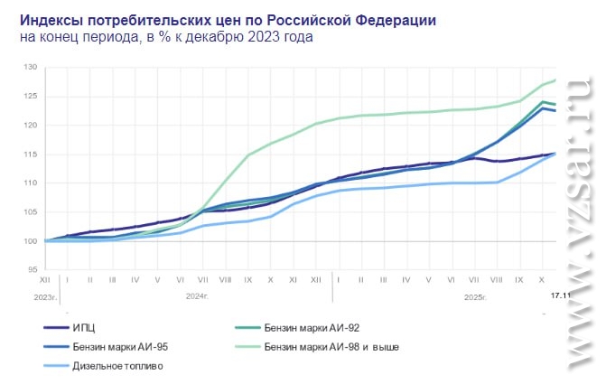 С 11 по 17 ноября рост цен на бензин автомобильный был зафиксирован в 35 субъектах Российской Федерации.