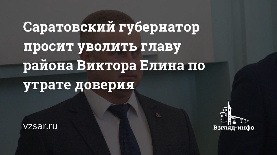 Саратовский губернатор просит уволить главу района Виктора Елина по утрате доверия