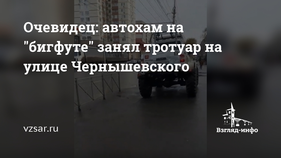 Очевидец: автохам на "бигфуте" занял тротуар на улице Чернышевского