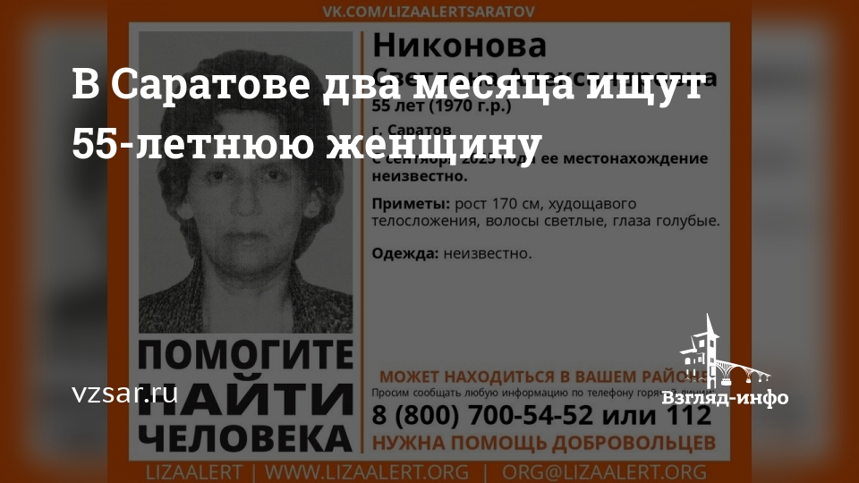 В Саратове ищут без вести пропавшую 55-летнюю Светлану Никонову, сообщает волонтерский отряд "Лиза Алерт Саратов".