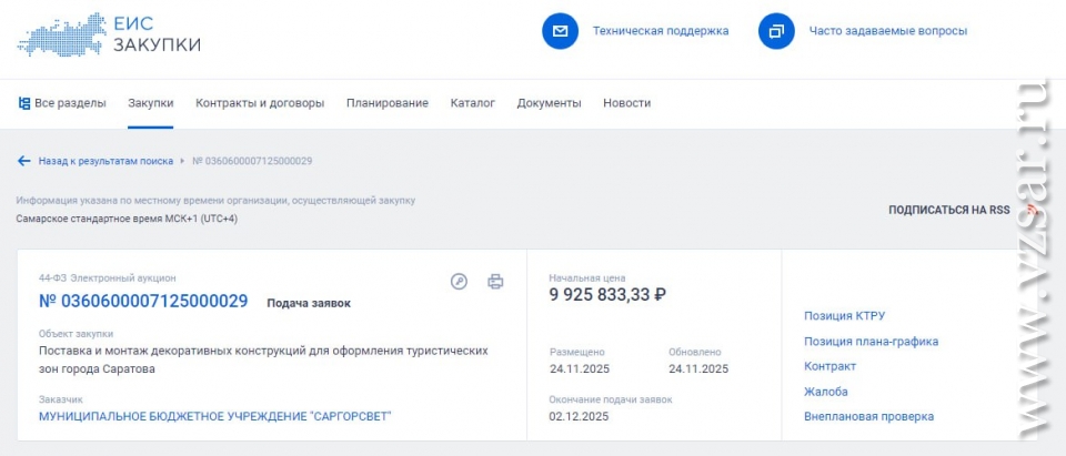 Подрядчику готовы заплатить 9 млн 926 тыс. рублей из бюджета Саратова.