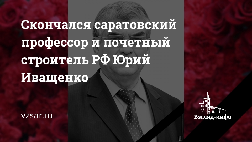 Вчера в Саратове на 76-м году жизни скончался почетный работник высшего профессионального образования и почетный строитель РФ Юрий Иващенко, сообщает пресс-служба СГТУ.