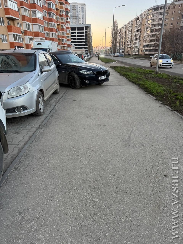 Как рассказал нашему изданию читатель, водитель черного BMW (госномер С 314 РО 164) не смог "по-человечески" вклиниться в ряд припаркованных друг за другом машин. Поэтому он решил поступить так, как ему удобно – частично заехать на тротуар, перегородив большую его часть.
