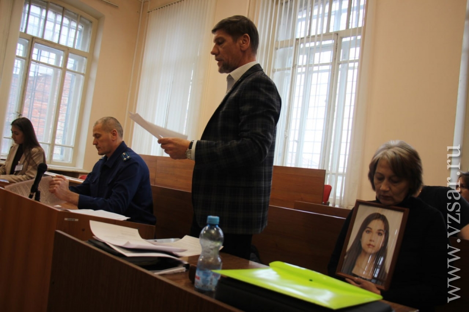На процессе председательствует судья Александр Ермолаев. Гособвинителем выступает Владимир Кондриков. Защищают подсудимого адвокаты Дмитрий Кирьянов и Алексей Сочнев. Также в зале присутствуют родители погибшей Алены.