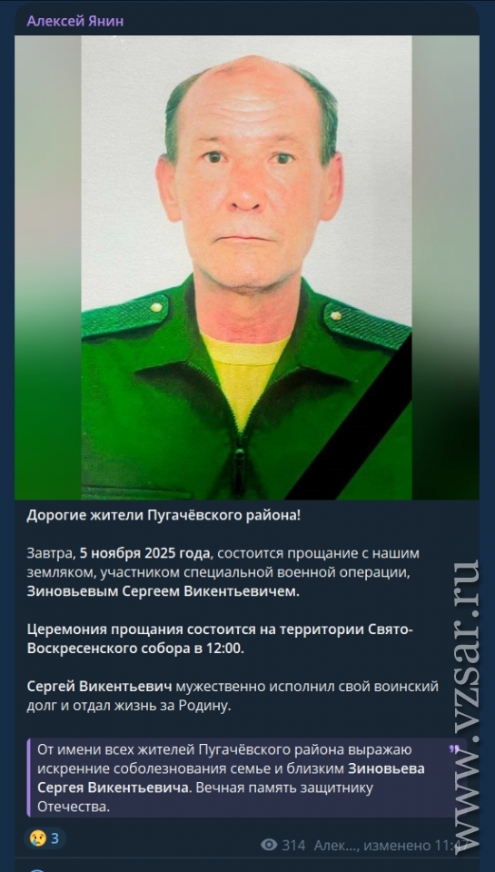 Глава Пугачевского района Алексей Янин рассказал, что завтра земляки простятся с погибшим Сергеем Зиновьевым.