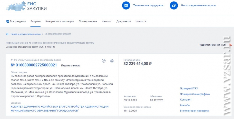 Подрядчику готовы заплатить 32 млн 240 тыс. рублей из бюджета Саратова.