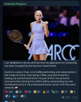 Австрия — место, которое я люблю, где меня тепло принимают и где чувствую себя абсолютно как дома. Мне очень нравится находиться в Вене, и я с нетерпением жду, чтобы сделать этот город своим вторым домом. В рамках этого с гордостью объявляю, что начиная с 2026 года я буду представлять свою новую родину, Австрию, в своей профессиональной теннисной карьере", - говорится в сообщении.