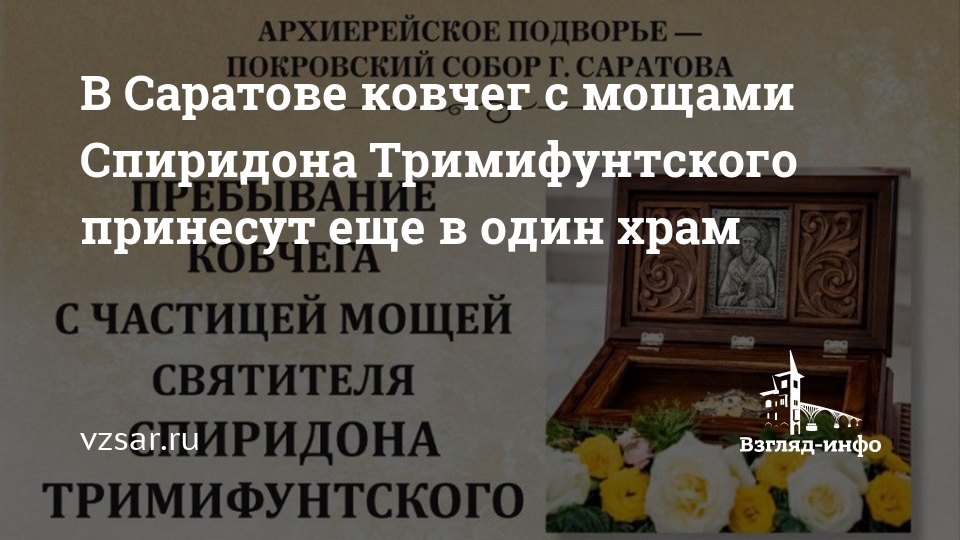 Ковчег с мощами святителя Спиридона Тримифунтского будет пребывать еще в одном храме Саратова, сообщает местная епархия.