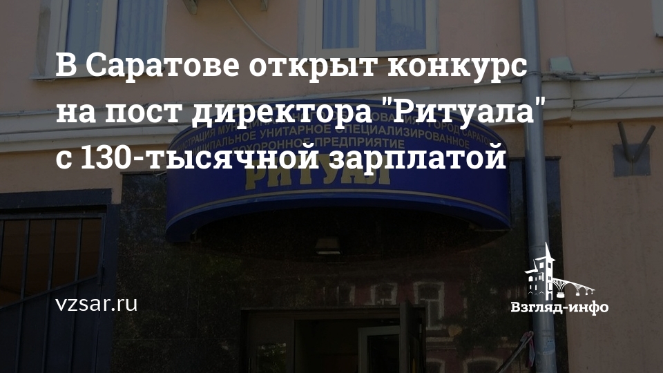 В Саратове открыт конкурс на пост директора "Ритуала" с 130-тысячной зарплатой