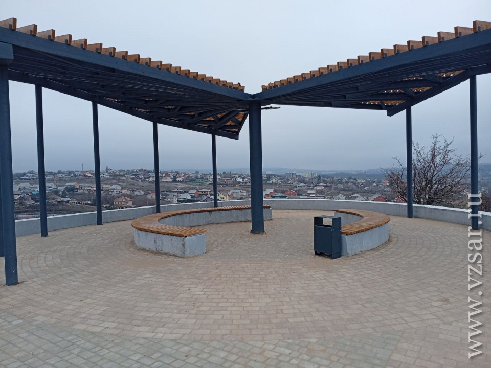С возвышенности открывается действительно отличный вид на частный сектор, областной перинатальный центр, поселок Солнечный. Вот только эти непонятные конструкции, которые всегда "принято" делать в таких местах, всегда вызывают у меня массу вопросов. По виду это похоже на перголу, но почему же никто и никогда не пускает по ней виноград? От солнечных лучей и дождя это модное "нечто" не защищает, зачем же тогда вообще тратить на "это" бюджетные средства?