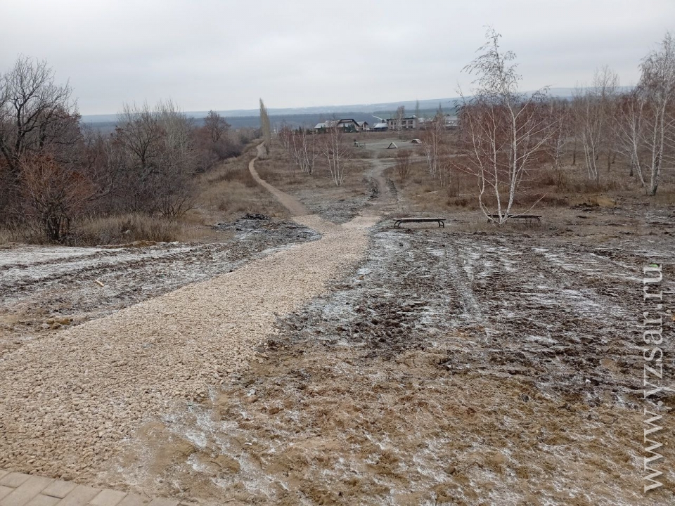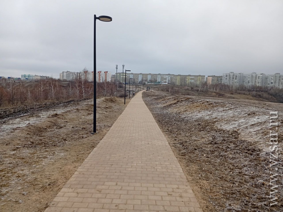 А вот креатив от мэрии Саратова, которую возглавляет Михаил Исаев, выглядит "инородным телом". Во-первых, громко заявленный "новый парк" представляет собой одну-единственную дорожку с фонарями, проложенную до смотровой площадки. Во-вторых, вокруг площадки непролазная грязь с глубокими следами шин, поэтому попасть из благоустроенной гражданами части в новую часть – непросто. Лично видел, как молодые родители тащили коляску по этим буеракам.