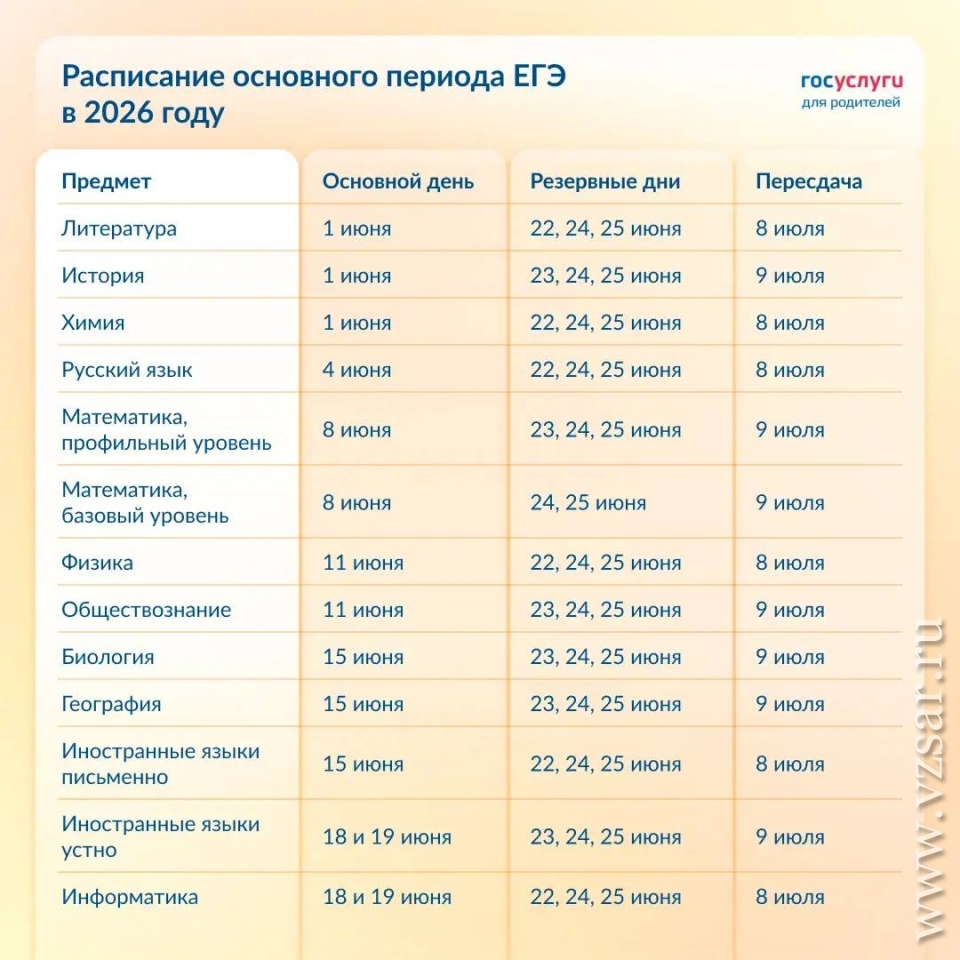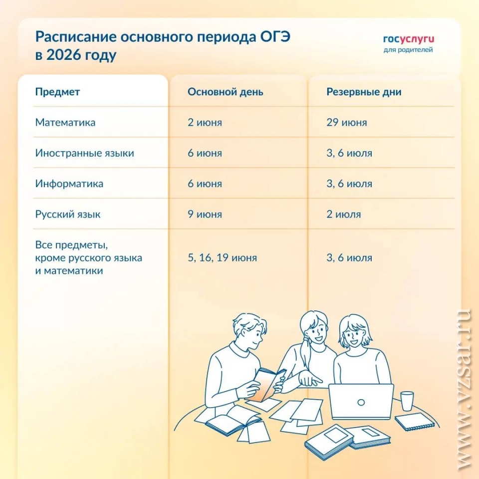 Для ОГЭ основные дни запланированы в период со 2 по 19 июня, а в качестве резервных дней выступают 29 июня, а также 2, 3 и 6 июля.