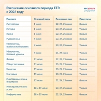 Основной период сдачи ЕГЭ начнется 1 июня, а завершится 19 июня. Резервные дни для сдачи экзамена предусмотрены с 22 по 25 июня, а дни пересдачи - 8 и 9 июля.