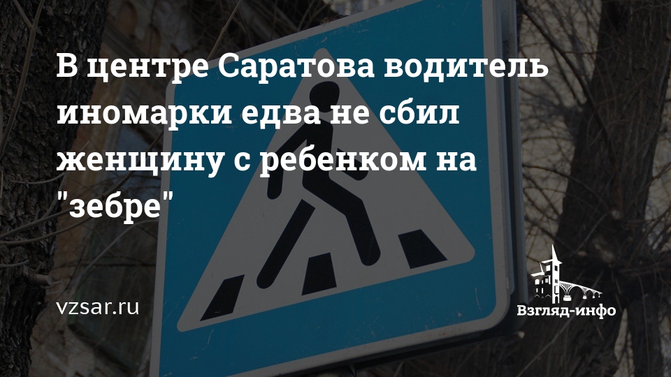 В центре Саратова водитель иномарки едва не сбил женщину с ребенком на "зебре"