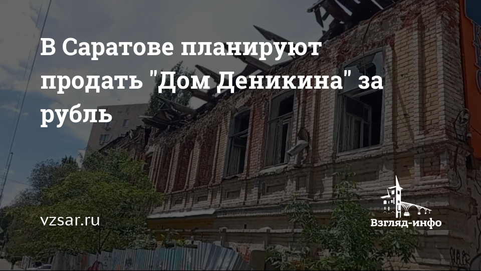 В Саратове планируют продать "Дом Деникина" за рубль