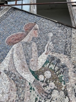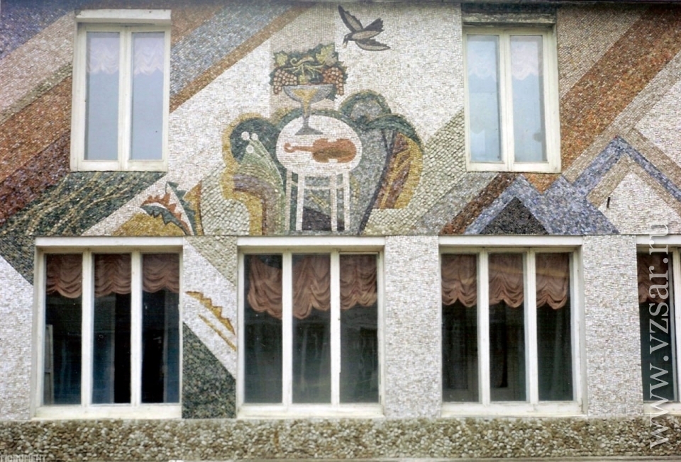 Напомним, что автор уникальных мозаик - Анвар Абдуллаев. Маститый художник оказался в Балашове в 1988 году. Работа над заняла три года — от эскизов до исполнения. Центральные фигуры на фасаде - с колоколами и скрипкой, полны внутреннего напряжения, по краям — безмятежный иконописец и мечтательная девушка с одуванчиками. У входа, повторяя движение посетителей, изображены мальчик и муза с венком.