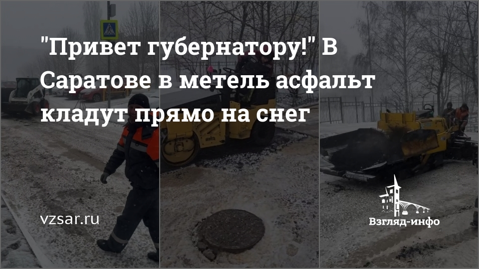 "Привет губернатору!" В Саратове в метель асфальт кладут прямо на снег