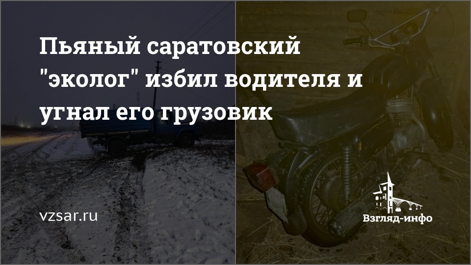 Вчера в Ртищевском районе Саратовской области пьяный "борец за природу" избил шофера и угнал его грузовик, сообщает региональное ГУ МВД.